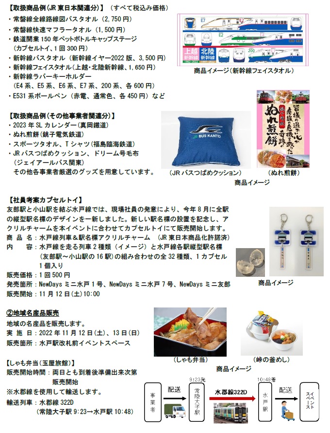 11/12(土)、13(日)10:00~17:00 JR水戸駅 改札前 自由通路イベントスペースにて 貨客混載輸送した商品を販売します!