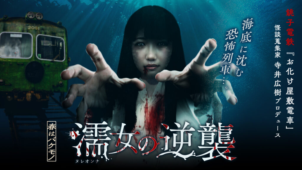 第七弾となる2026年のテーマは、「濡女の逆襲」です。怪談蒐集家の寺井広樹氏プロデュースのもと銚子の地で語り継がれてきた恐ろしくも哀しい物語をお届けいたします。懐中電灯を携えた竹本社長が怪談を披露するシーンや、いつもと違った銚子電鉄の電車や駅でゾンビによる恐怖体験など、大人から子供まで楽しんでいただける内容となっております。
