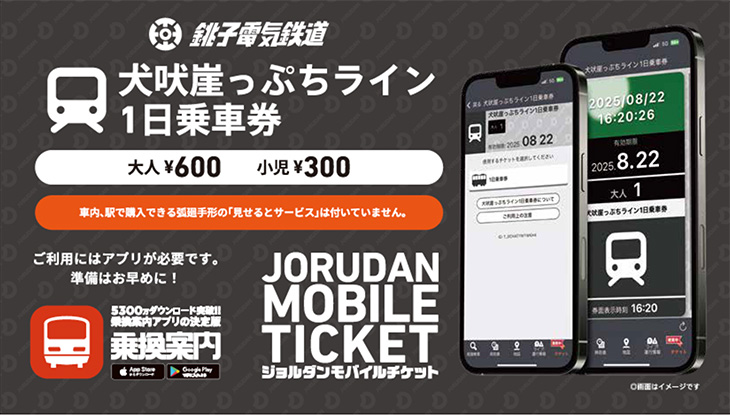 銚子から外川間の全線を1日乗り降りできる乗車券です。見せるとサービスもいろいろ付いています! |